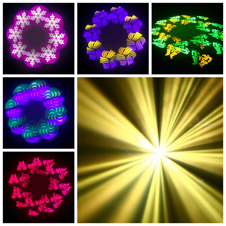Rotate Gobo Wheel: 9 rotatable gobos with speed adjustable