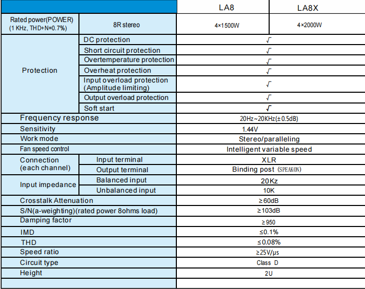 LA8 4 x1500w 8Ohm digital power amplifier with DSP